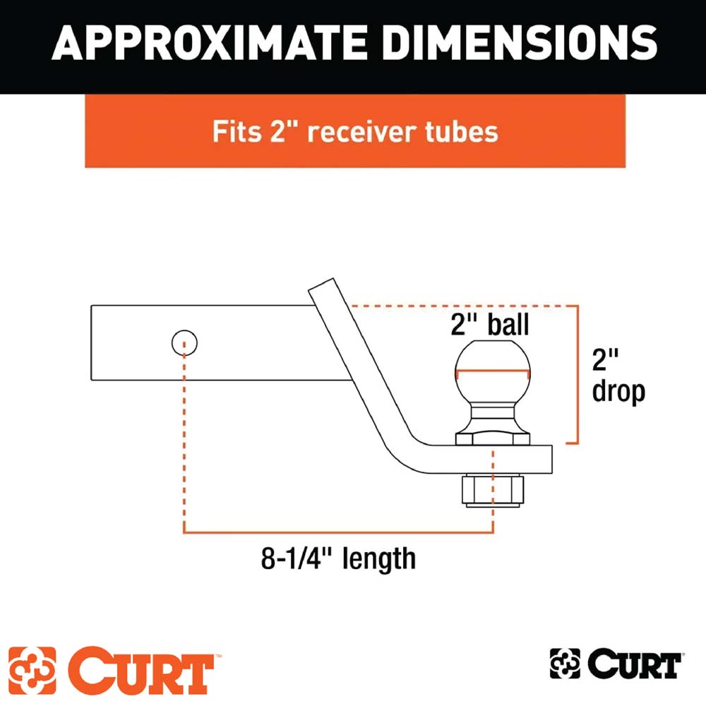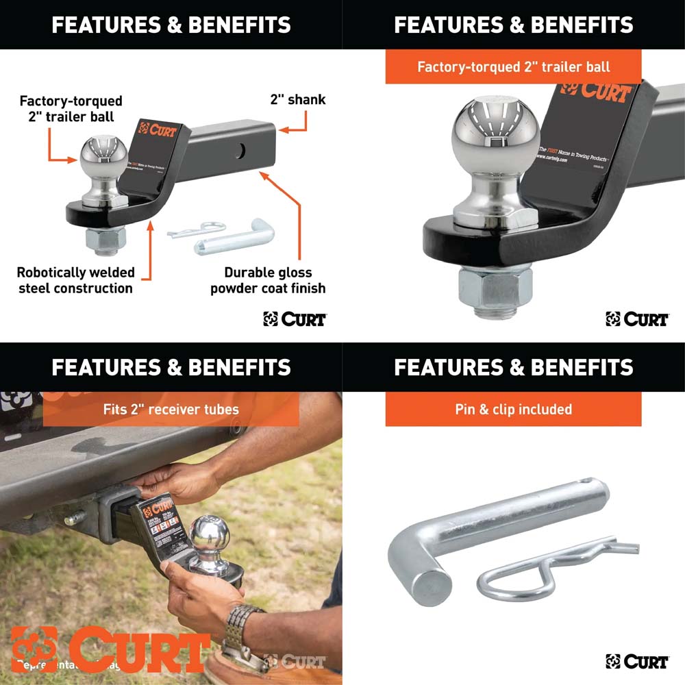 La bola de remolque CURT, ajustada de fábrica, admite un acoplador de 2”