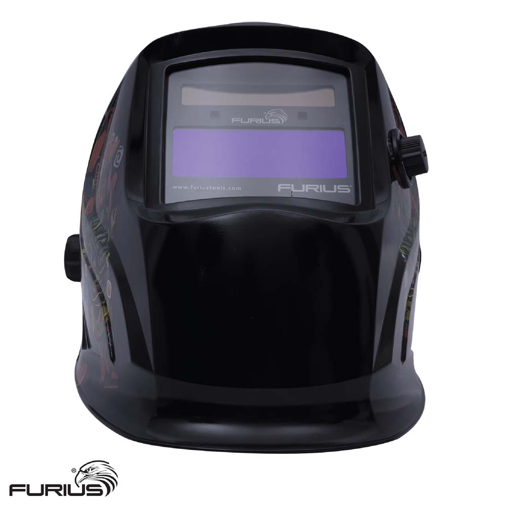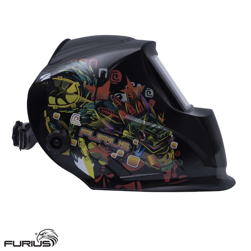 Careta para soldar Fotosensible con regulación DIN9-13 con doble alimentación, solar y batería, la hace más versátil y prolonga la vida útil de la batería al tener una fuente alterna de alimentación.