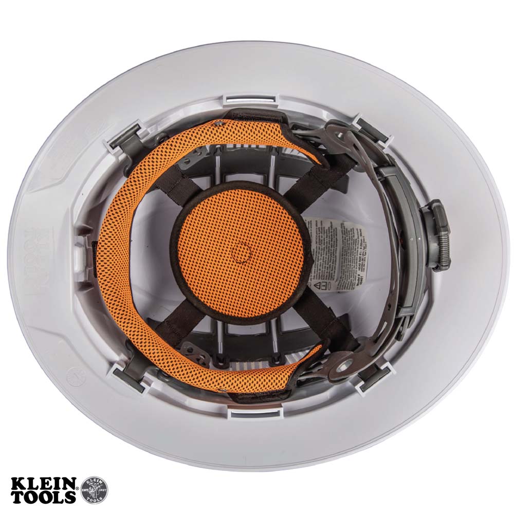 • El casco de seguridad tipo cachucha incluye soportes adicionales con patente pendiente en la parte frontal y posterior que permiten que las luces frontales Klein siempre se ajusten de manera segura y precisa; no se necesitan correas ni amarres plásti
