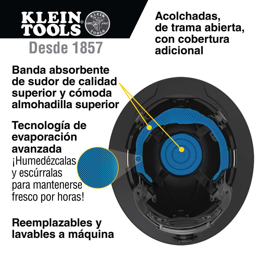 • Banda absorbente de sudor acolchada de trama abierta y almohadilla superior que brindan mayor comodidad y son lavables a máquina