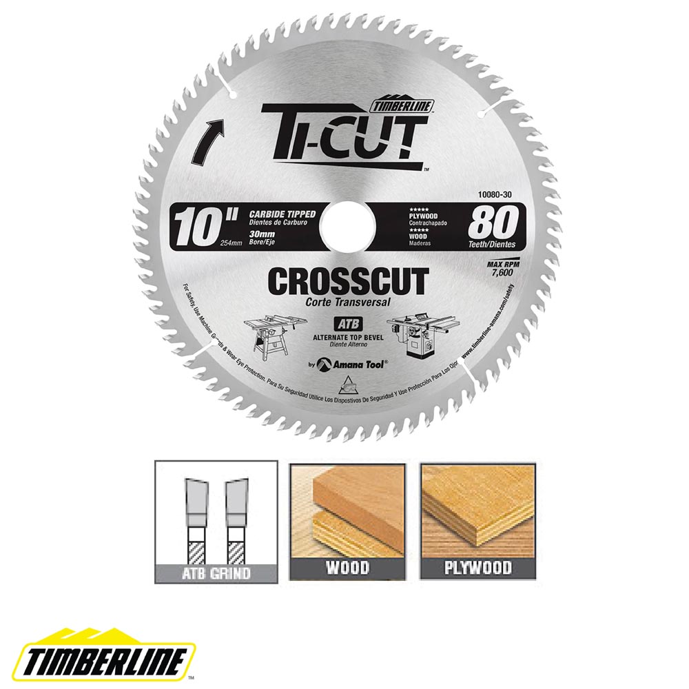 Disco Ti-Cut™ con punta de carburo para uso general y acabado, 10 pulgadas de diámetro x 80 dientes, 10 grados, orificio de 30 mm