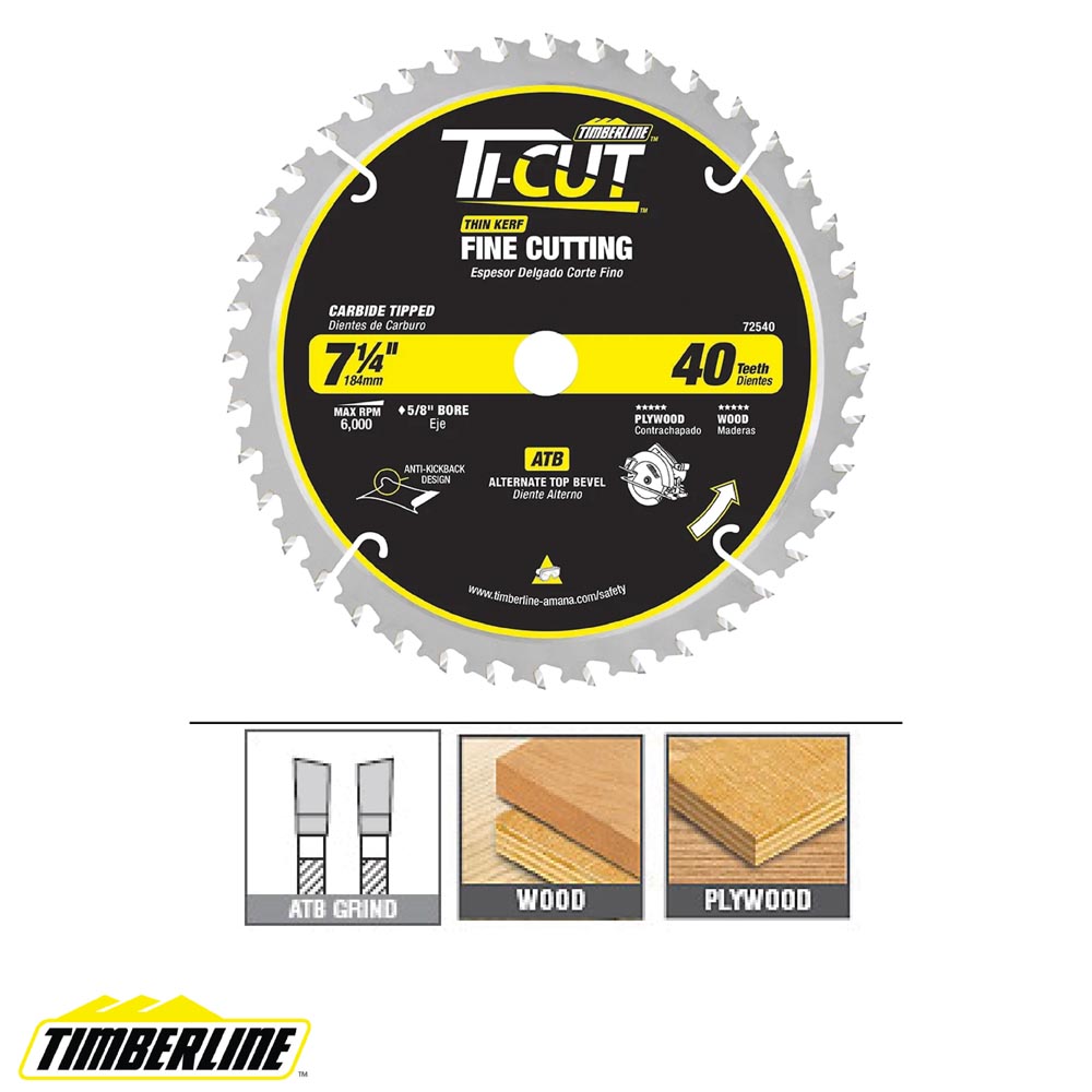 Disco Ti-Cut™ con punta de carburo para uso general y acabado, diámetro de 7-1/4 pulgadas x 40 dientes, ATB, 10 grados, orificio de 5/8 con perforación de diamante