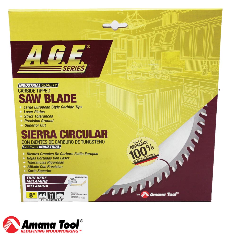 Disco de sierra circular de doble cara con corte fino y punta de carburo MD8-643TB para melamina de 8 pulgadas de diámetro x 64 dientes H-ATB, -3 grados, orificio de 5/8"