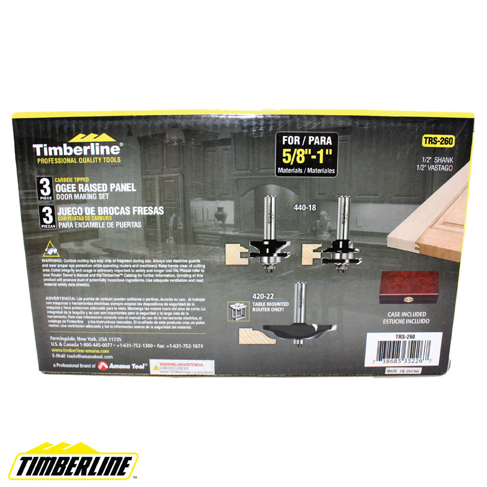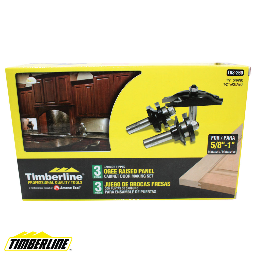 - Juego de brocas para puertas estilo Ogee de 3 piezas con cortador trasero para hacer cortes de montantes y travesaños con paneles elevados.