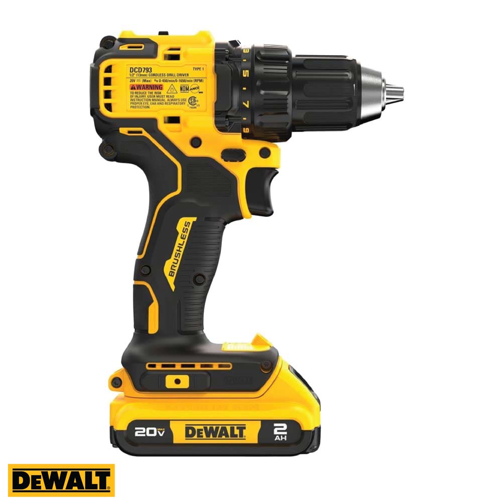 Taladro inalámbrico DEWALT de 20 V máx., sin escobillas y sin llave, de 1/2 pulgada (incluye 1 batería y cargador)