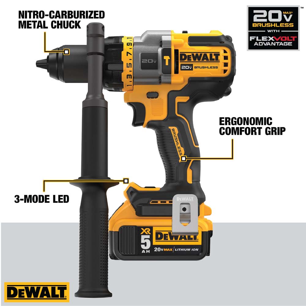 El taladro de martillo DCD999 DEWALT de 20 V obtiene hasta un 42% más de potencia cuando se empareja con baterías FLEXVOLT