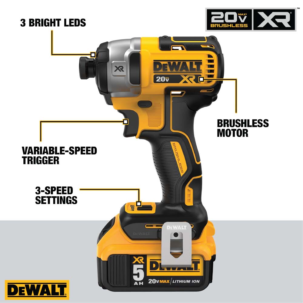 LED 20 veces más brillante: el LED DCD999 de 3 modos proporciona iluminación en espacios oscuros o reducidos hasta 20 veces más brillante que el DEWALT DCD985