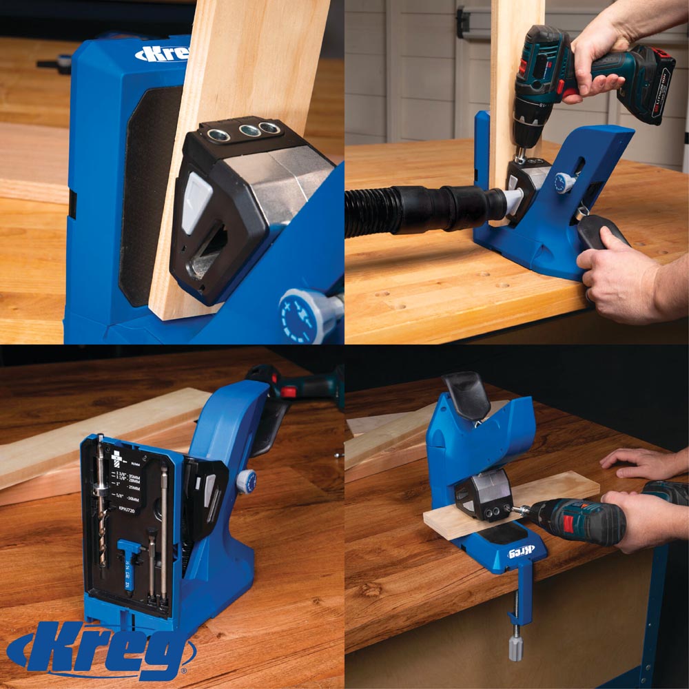 - El amacenamiento a bordo mantiene los accesorioes Kreg a mano
