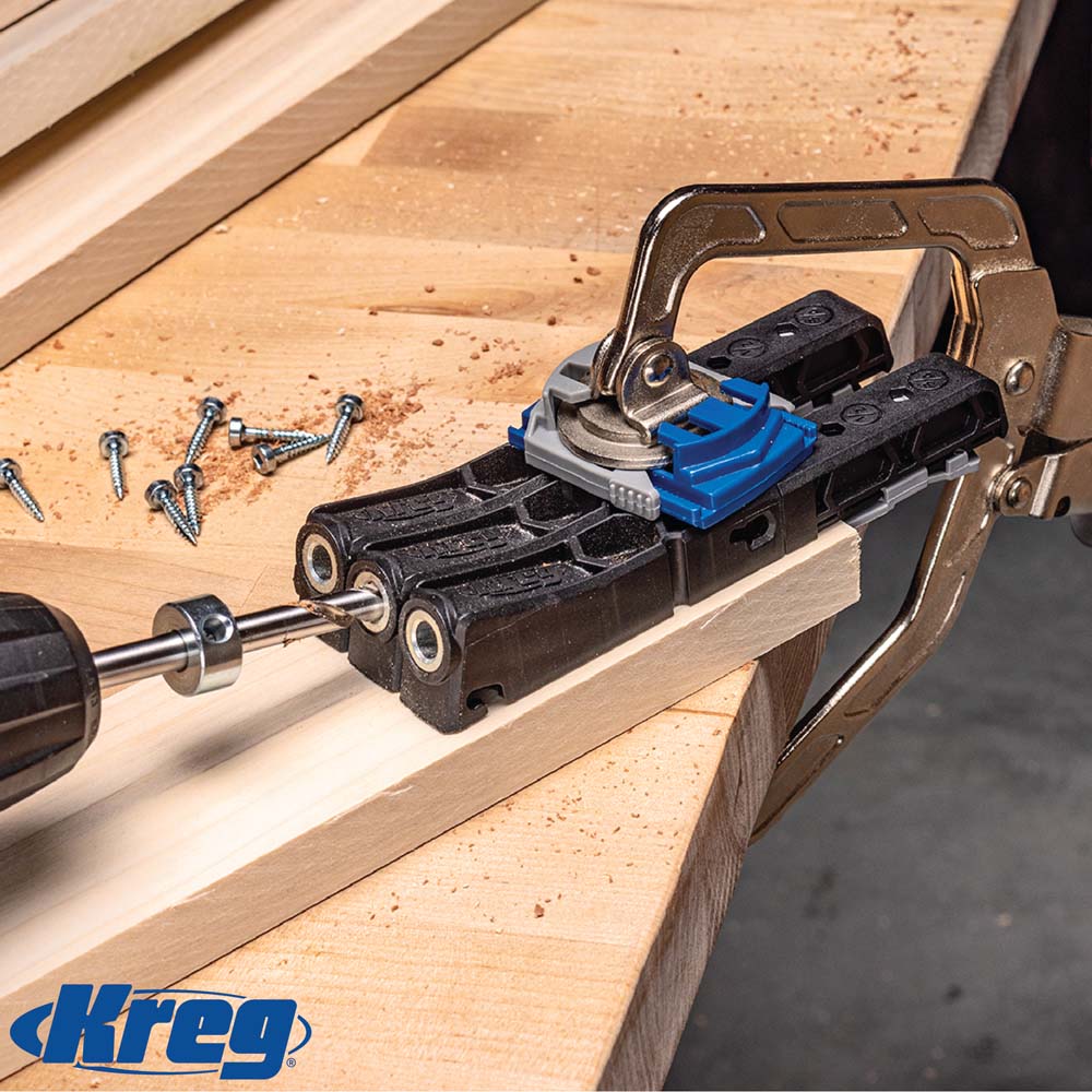 Kreg Pocket-Hole Jig Micro crea un agujero de bolsillo un 33% más pequeño. Estos orificios de bolsillo más pequeños son perfectos para trabajar con material delgado y angosto al construir cajones, trabajar en proyectos de manualidades más pequeños o para realizar reparaciones. Esta nueva plantilla independiente es fácil de usar y, al igual que nuestras otras plantillas de la serie 300, es increíblemente versátil. Con un diseño giratorio para ajustes de espesor de ½" y ¾", broca de fácil instalación y guías de broca de acero endurecido, esta es la solución perfecta cuando se trabaja con material delgado y angosto.
