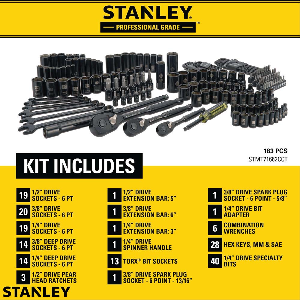 JUEGO DE HERRAMIENTAS MECÁNICAS - 183 PIEZAS - CROMO NEGRO