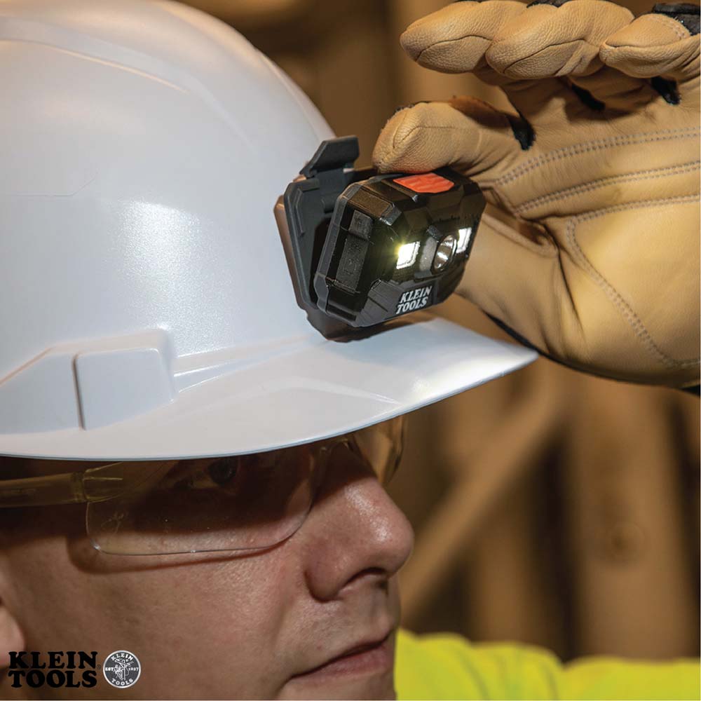 • Luz frontal recargable que se ajusta directamente a los cascos de seguridad tipo cachucha de Klein (equipados con sistema de soporte)