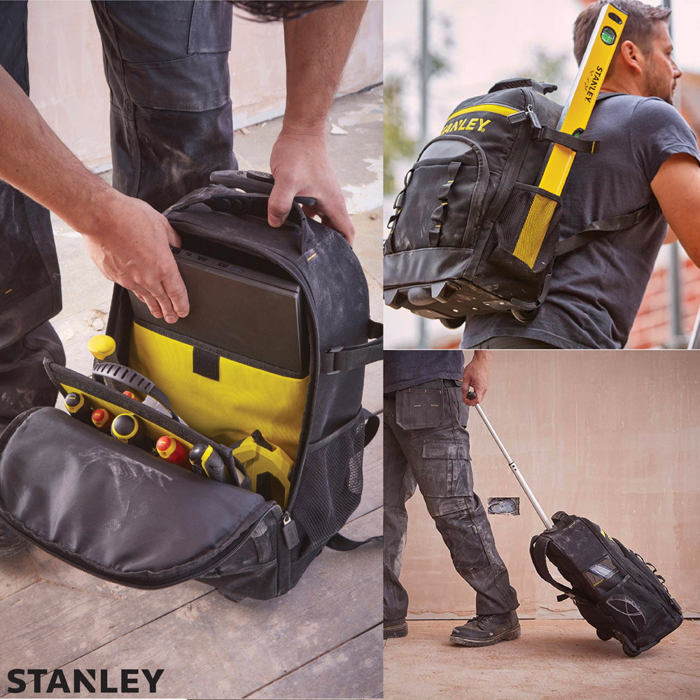 - Transporte cargas pesadas sobre ruedas con el asa telescópica o llévelas cómodamente sobre la espalda con las dos correas ergonómicas para los hombros.