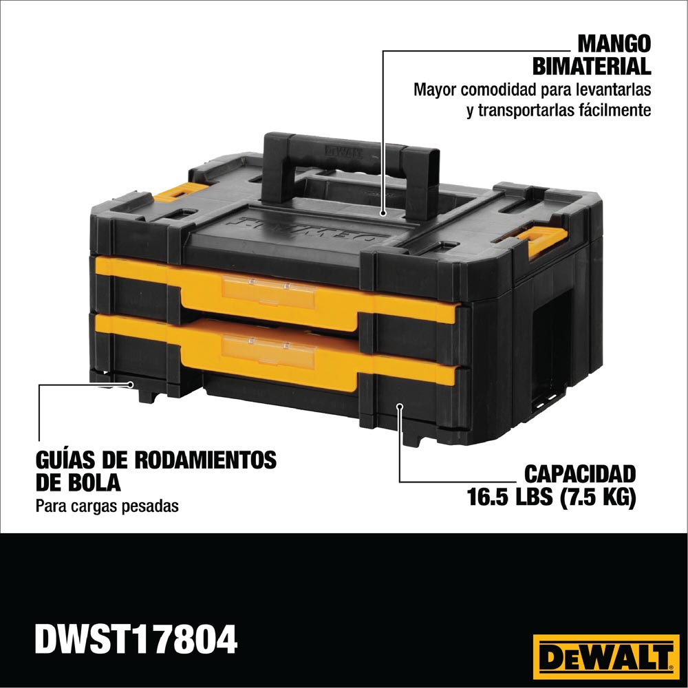El organizador de cajones dobles poco profundos DEWALT® TSTAK® está diseñado para brindarle un fácil acceso a lo que más necesita. Cuenta con un conjunto de pestillos en la parte superior y pestillos en la parte inferior que le permiten bloquearse directamente en cualquier otro elemento TSTAK de forma segura. Los cajones delgados de este organizador de almacenamiento DEWALT ofrecen espacio para brocas, clavos, archivos y otros artículos pequeños. La capacidad máxima de peso del contenedor de 16,5 libras significa que puede guardar con seguridad todo lo que necesita. Puede abrir los cajones del organizador de almacenamiento de plástico sin atascarse, incluso con cargas pesadas, gracias a las correderas con rodamientos de bolas. Un asa superior de dos materiales hace que sea cómodo recoger o transportar esta caja de accesorios donde sea que necesite ir.