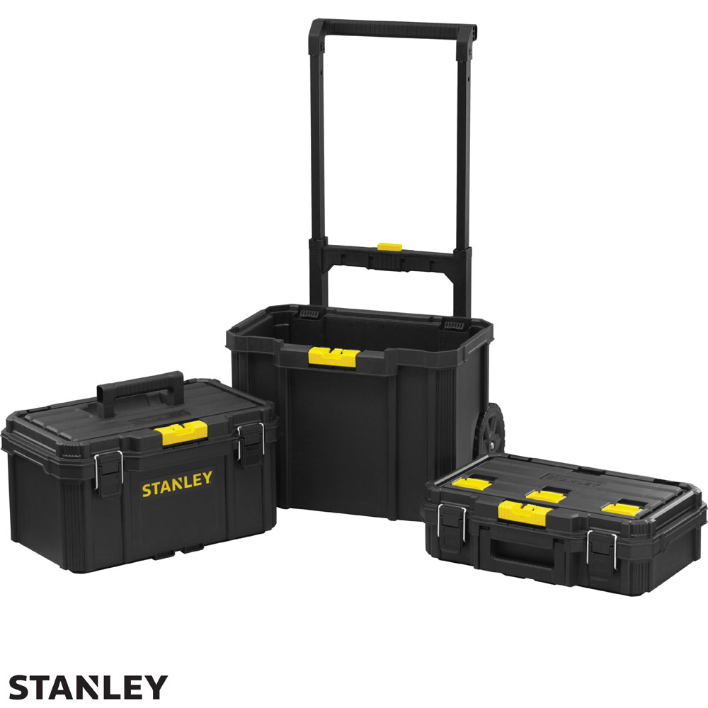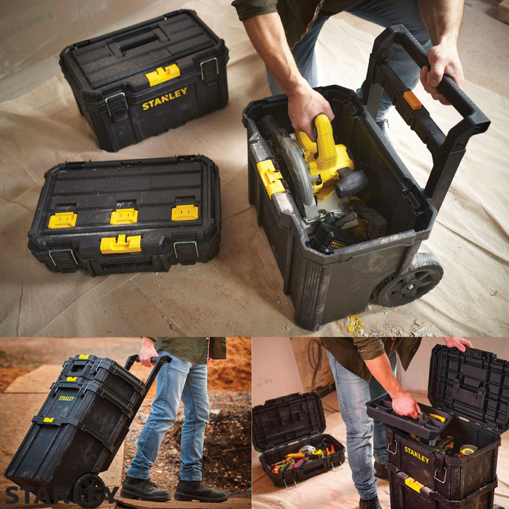 Taller móvil STANLEY® es una solución de taller portátil 3 en 1, que se separa en tres cajas de herramientas en cuestión de segundos.