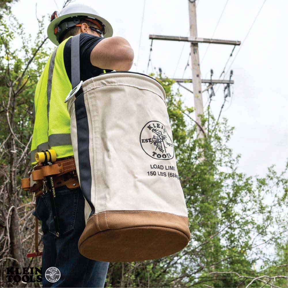 • Parte superior de la cubeta para herramientas que cuenta con un cierre relámpago