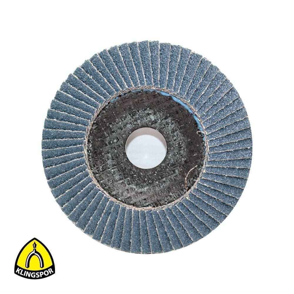 El disco de láminas abrasivo SMT 624 Supra posee una superficie abombada en 12°. Representa la elección adecuada para conseguir una alta tasa de remoción en cantos, cordones de soldadura y otras superficies pequeñas. Además, demuestra sus excelentes propiedades en el biselado. ||Klingspor||