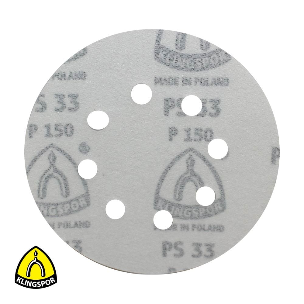Como base para el disco abrasivo PS 33 CK, Klingspor utiliza un soporte de papel (papel C). Se trata de un papel semi-pesado que se puede cortar, arrancar y doblar con facilidad. Para mecanizar puntos difícilmente accesibles con la lijadora excéntrica, el papel abrasivo también se puede doblar o arrancar para permitir el lijado manual.