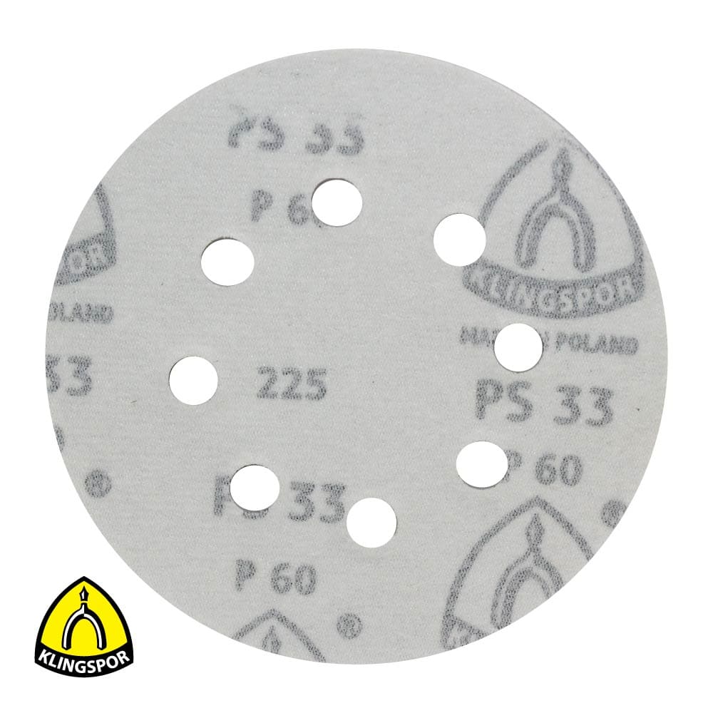 Como base para el disco abrasivo PS 33 CK, Klingspor utiliza un soporte de papel (papel C). Se trata de un papel semi-pesado que se puede cortar, arrancar y doblar con facilidad. Para mecanizar puntos difícilmente accesibles con la lijadora excéntrica, el papel abrasivo también se puede doblar o arrancar para permitir el lijado manual.