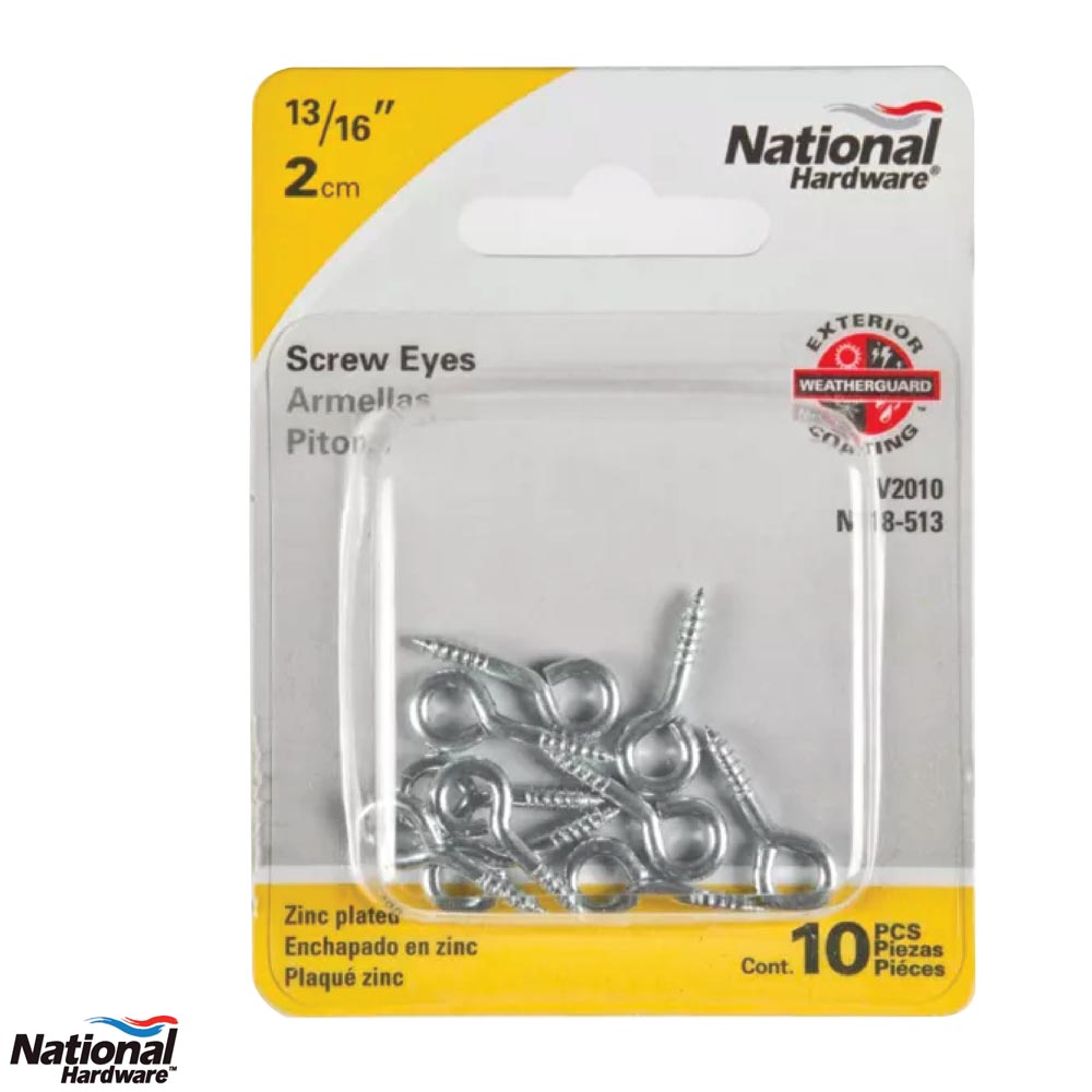 - El tornillo de ojo chapado en zinc n.° 214 de 13/16" de National Hardware está diseñado para fijar firmemente un ojo de seguridad a una estructura para ataduras de cables o cuerdas.