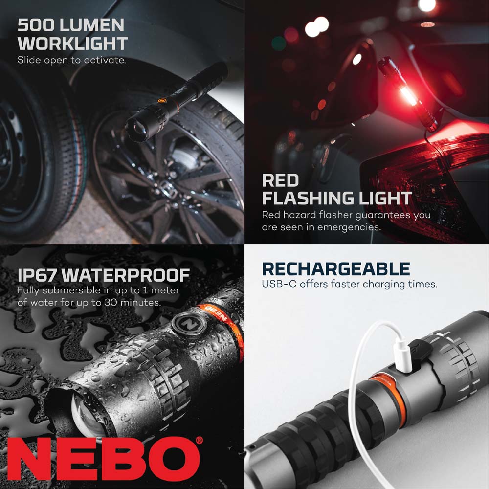¿Buscas una linterna LED que pueda con todo? La SLYDE KING 2K de NEBO es nueva y mejorada, y sigue siendo la KING. Recargable por USB-C con clasificación de impermeabilidad IP67, la SLYDE KING 2K es extremadamente versátil con una linterna LED superbrillante de 2000 lúmenes y una luz de trabajo C•O•B de 500 lúmenes, todo en uno. Hay cuatro modos de luz y todos ellos son regulables con memoria programable para adaptarse a tus necesidades personalizadas.