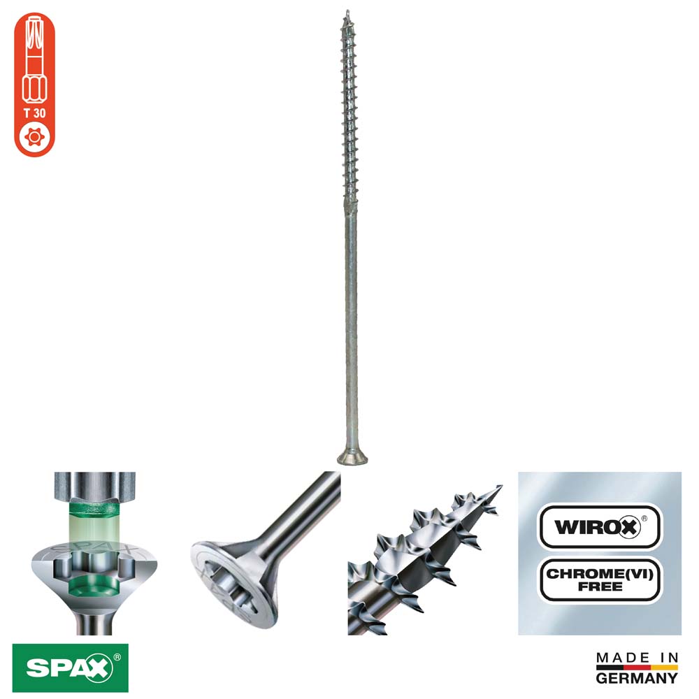 Con WIROX, SPAX ha desarrollado un revestimiento que está muy por encima del galvanizado en cuanto a la protección contra la corrosión. Con WIROX no se utiliza cromo (VI), los tornillos siguen presentando la misma capacidad de carga, aunque hayan pasado años en el exterior, no expuestos directamente a la intemperie y, además, son compatibles con el medio ambiente. Los tornillos WIROX son la primera opción para construcciones que no estén expuestas directamente a la intemperie, como cocheras o pérgolas; en caso de una exposición directa a la intemperie, como una terraza, aconsejamos nuestros tornillos en la variante de acero inoxidable. ||Spax||
