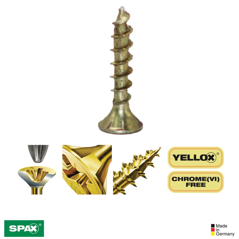 - YELLOX A2L: se alcanza una mayor protección contra la corrosión atmosférica en comparación con la galvanizada tradicional. Libre de cromo (VI) y por tanto mucho más respetuoso con el medio ambiente tanto en su uso como en su fabricación. ||Spax||