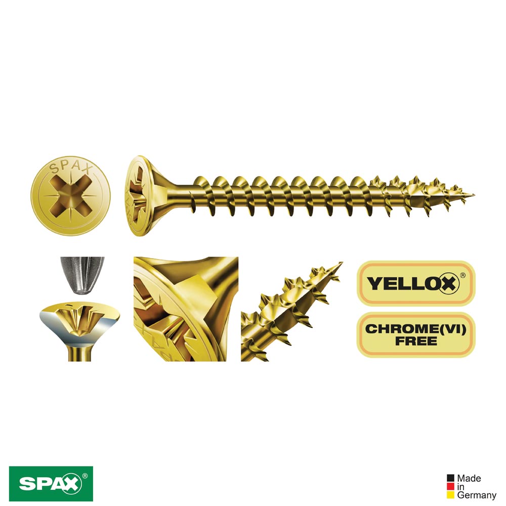 - YELLOX A2L: se alcanza una mayor protección contra la corrosión atmosférica en comparación con la galvanizada tradicional. Libre de cromo (VI) y por tanto mucho más respetuoso con el medio ambiente tanto en su uso como en su fabricación. ||Spax||