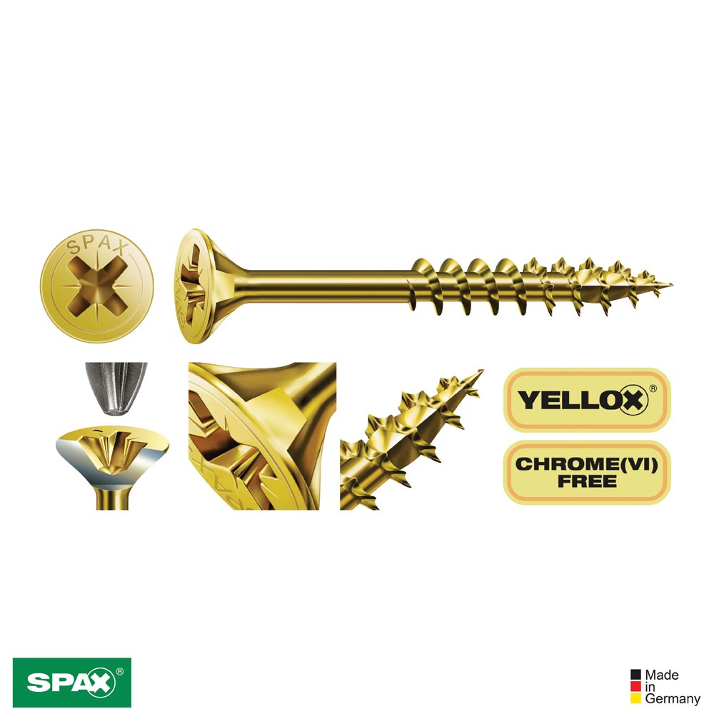 - YELLOX A2L: se alcanza una mayor protección contra la corrosión atmosférica en comparación con la galvanizada tradicional. Libre de cromo (VI) y por tanto mucho más respetuoso con el medio ambiente tanto en su uso como en su fabricación. ||Spax||