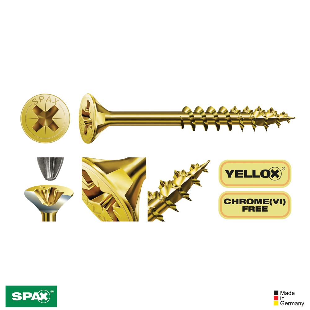 - YELLOX A2L: se alcanza una mayor protección contra la corrosión atmosférica en comparación con la galvanizada tradicional. Libre de cromo (VI) y por tanto mucho más respetuoso con el medio ambiente tanto en su uso como en su fabricación. ||Spax||