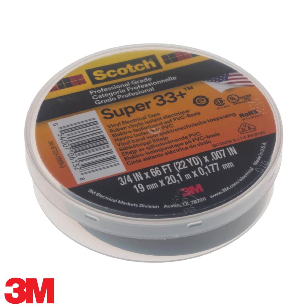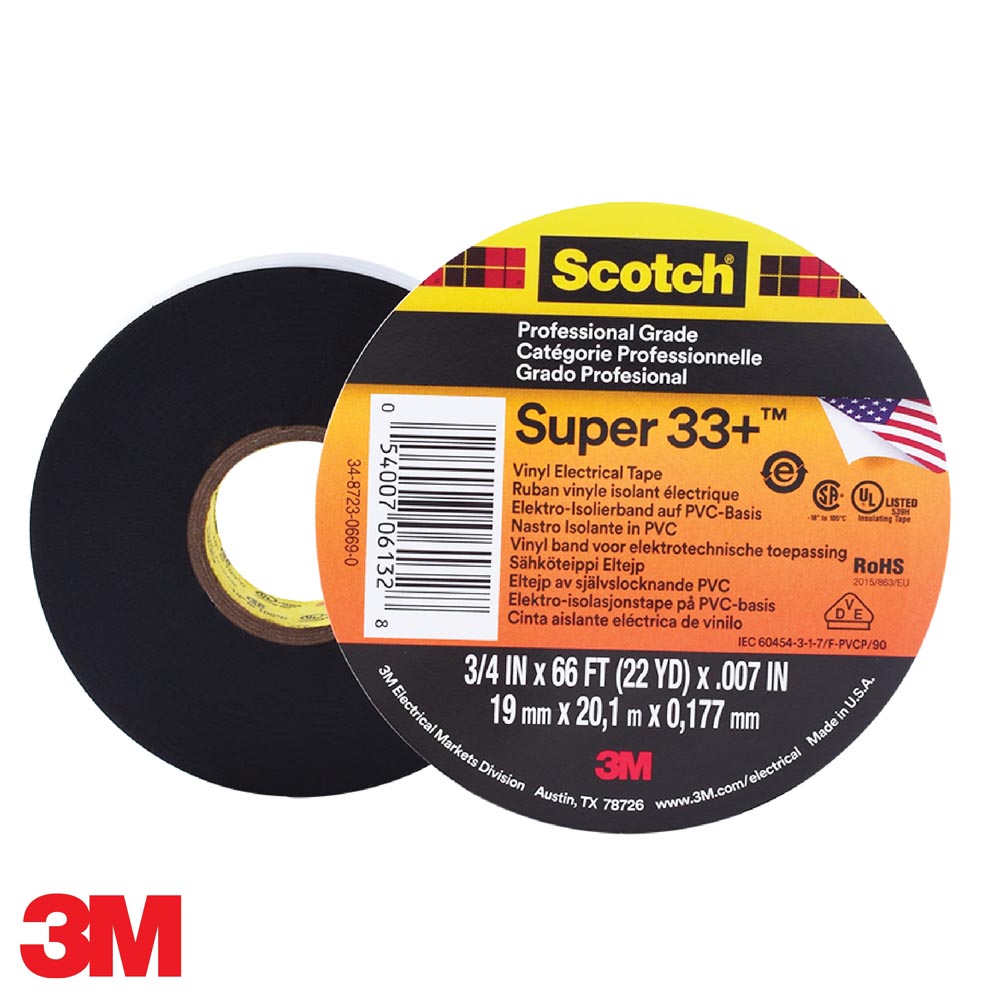 - La combinación de respaldo elástico y adhesivo agresivo en la cinta Scotch® Super 33 + ™ proporciona protección eléctrica y mecánica a prueba de humedad con un volumen mínimo.