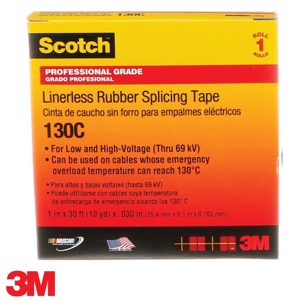 La cinta 130C de Scotch® es una cinta de goma para empalmes sin revestimiento de primera calidad, tiene 30 mil. de espesor, es utilizada para empalmar y terminar cables y alambres. Soporta temperaturas de hasta 194 ° F (90 ° C) con sobrecarga de emergencia de hasta 266 ° F (130 ° C). La cinta tiene excelentes propiedades eléctricas y mecánicas para proporcionar protección contra la humedad.