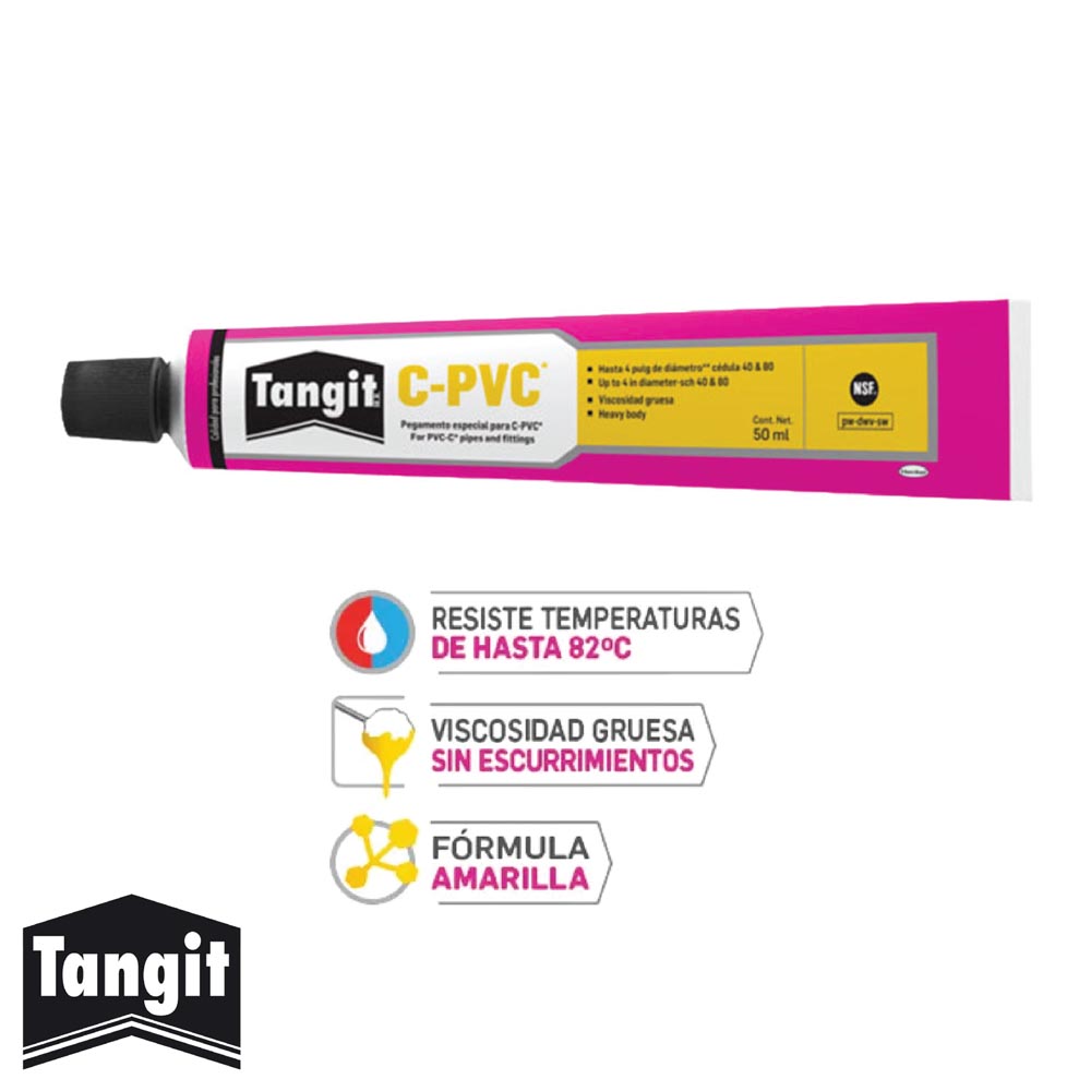 Tangit C-PVC es un pegamento de base solvente y resina de C-PVC de alta resistencia térmica especificado para tuberías de C-PVC de cualquier fabricante.