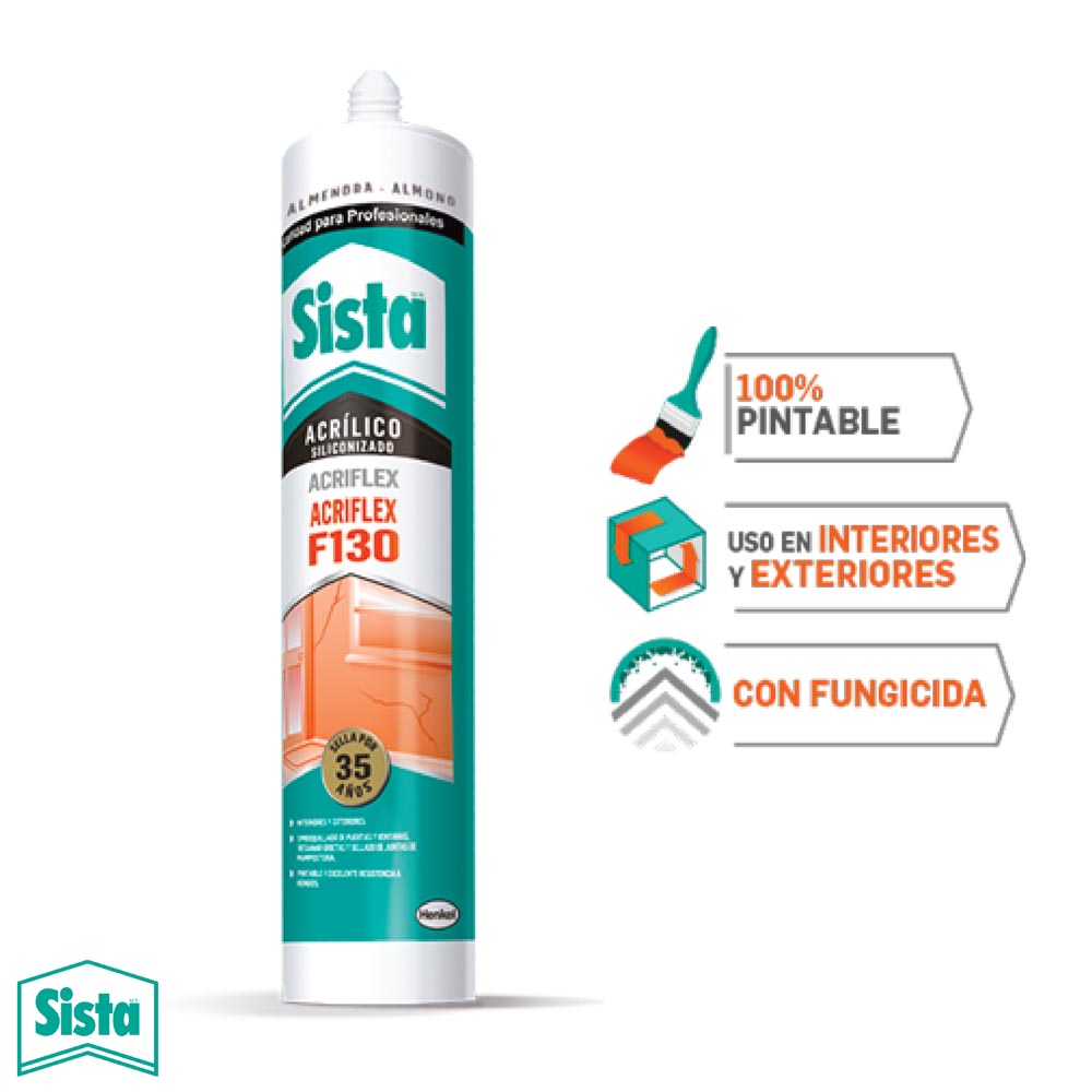 Sista F 130 Acriflex es un sellador de acrílico siliconizado formulado con resinas acrílicas de excelente calidad que se adhiere a diversos materiales lisos y porosos, formando un sello resistente y durable.