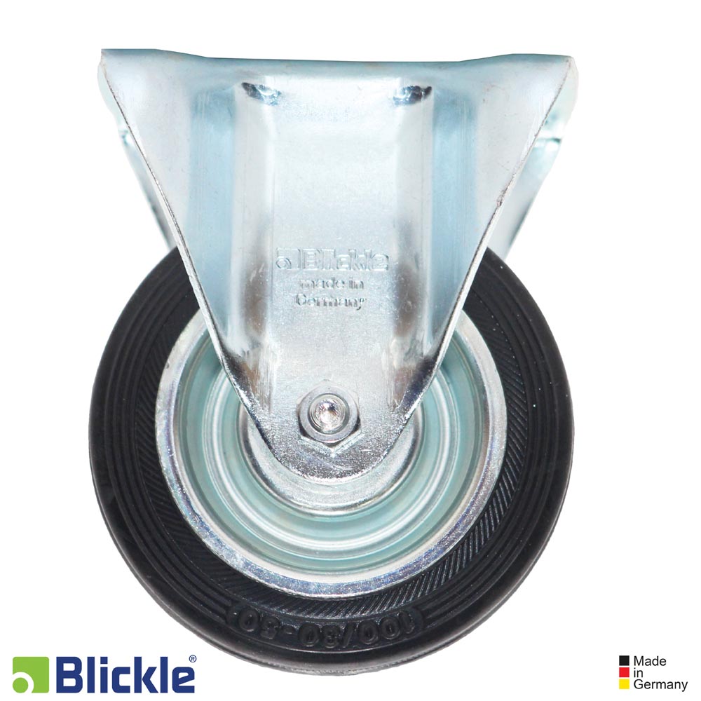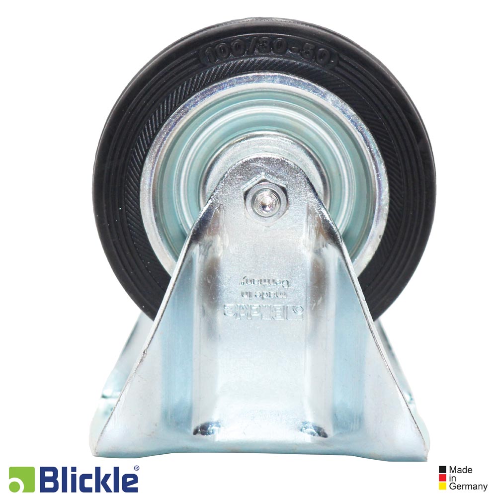 Rodo fijo de chapa de acero, versión mediana, con platina atornillable Rueda de goma maciza estándar, con núcleo de chapa de acero, versión reforzada