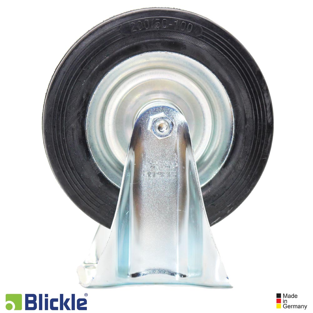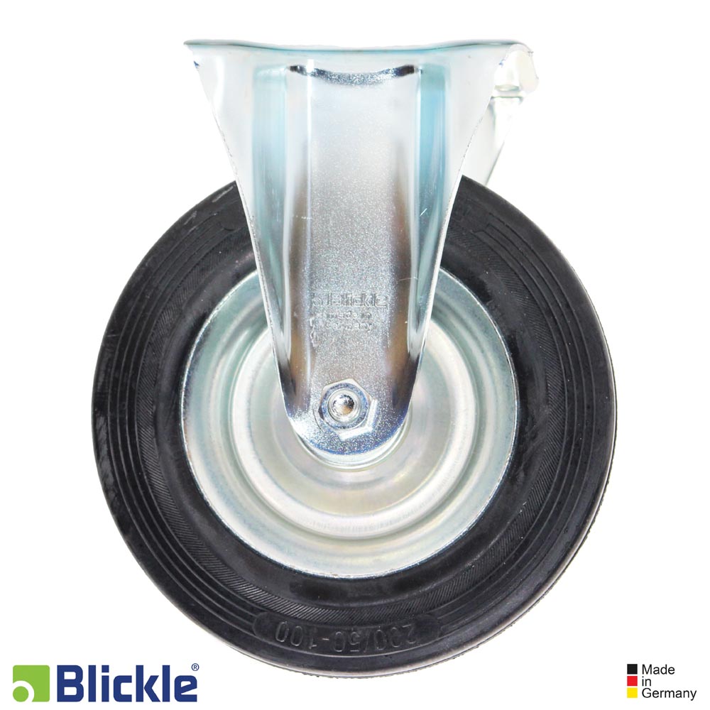 Rodo fijo de chapa de acero, versión mediana, con platina atornillable Rueda de goma maciza estándar, con núcleo de chapa de acero, versión reforzada