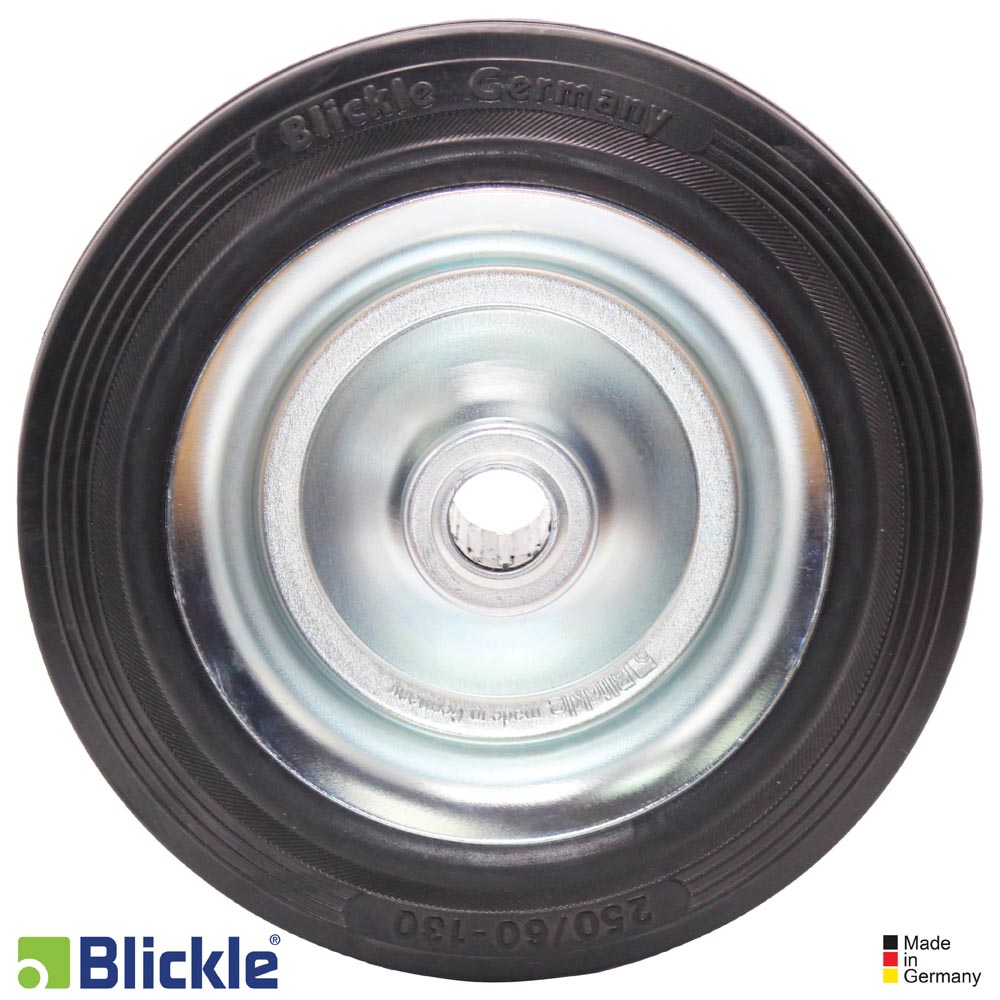 Ruedas: de goma maciza estándar, muy alta comodidad de marcha, marcha silenciosa, muy respetuosa con el suelo, conformidad de PAK según la directiva UE 2005/69/CE.