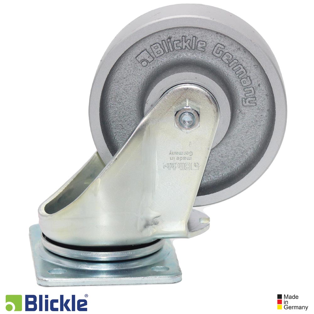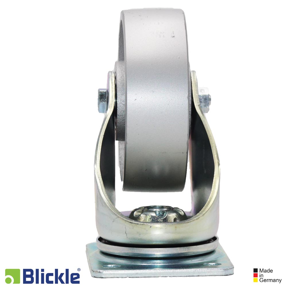 Soporte serie LH/BH: chapa de acero gruesa, zincada, pasivada color azul, libre de Cr6. Horquilla y platina pesada. Doble carril de bolas en la cabeza giratoria. Vástago central muy estable, atornillado y fijado. Especialmente resistente frente a choques y golpes gracias a cuatro cojinetes endurecidos con forma especial.