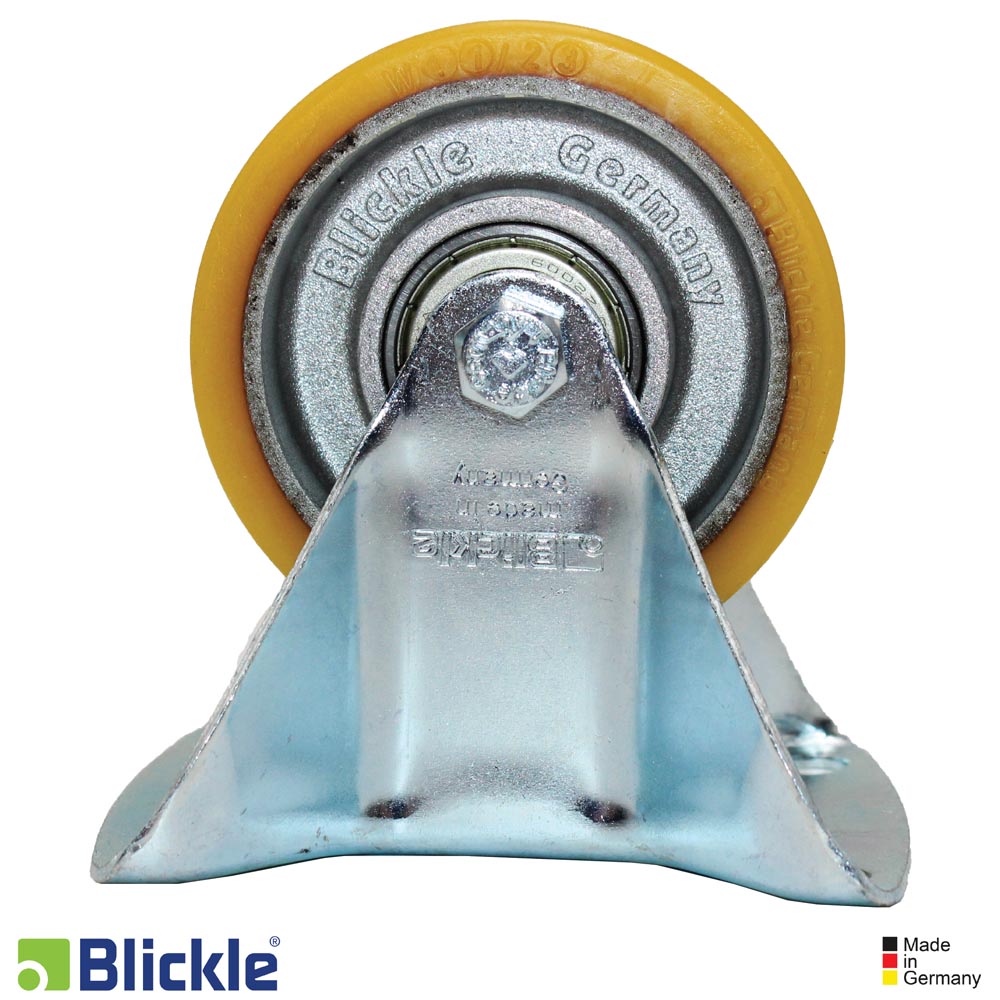 - banda de rodadura: elastómero de poliuretano de alta calidad Blickle Extrathane®, dureza 92 Shore A, color marrón claro, no deja huellas, no decolora al contacto