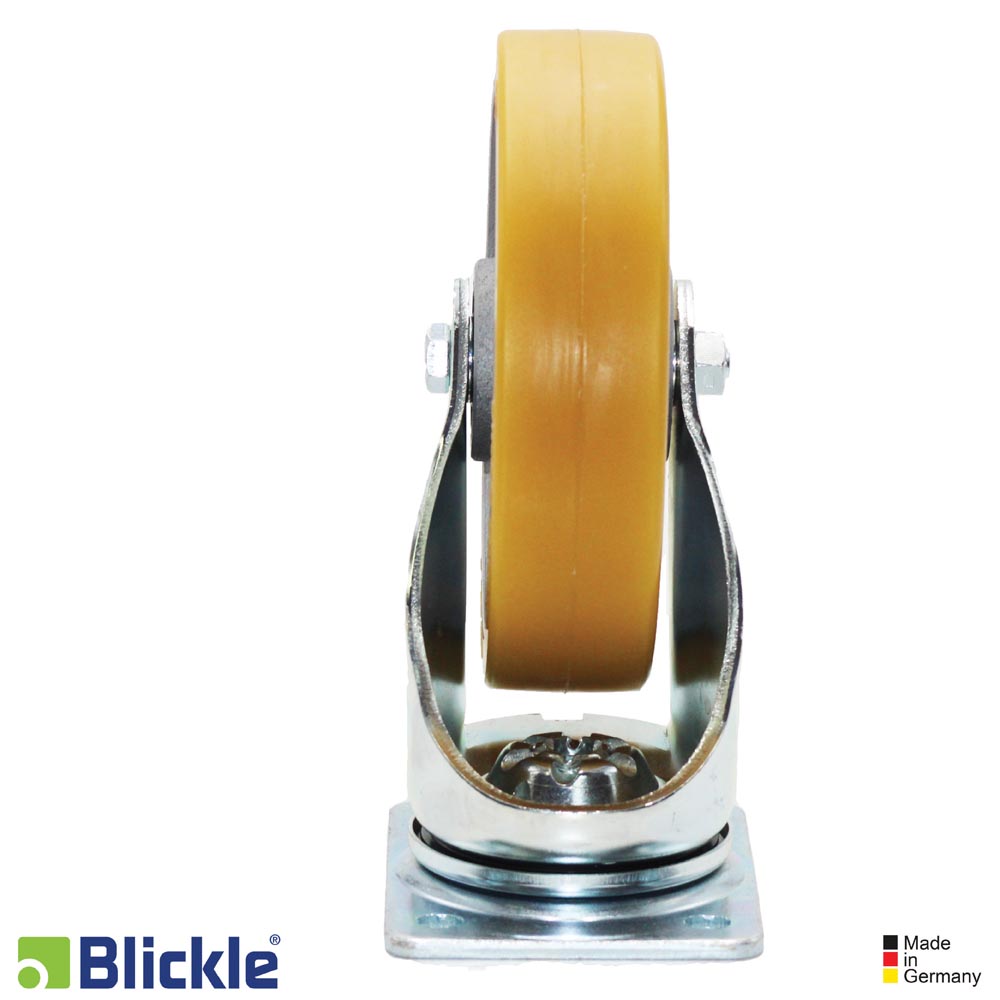 Rueda serie GTH: banda de rodadura elastómeo de poliuretano de alta calidad Blickle Extrathane, dureza 92 Shore A, color marrón claro, no deja huellas, no decolora al contacto.